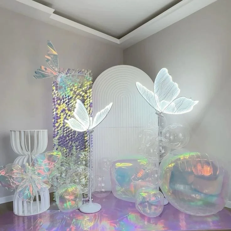 If you believe that the beauty of an event lies in the details, then iridescent finishes are definitely worth exploring. Imagine table runners that subtly shift from blush to cobalt under candlelight, or glassware that captures the colors of the sunset like a prism—transform formal dances, galas, or birthday parties into dreamy, high-glam art installations!
